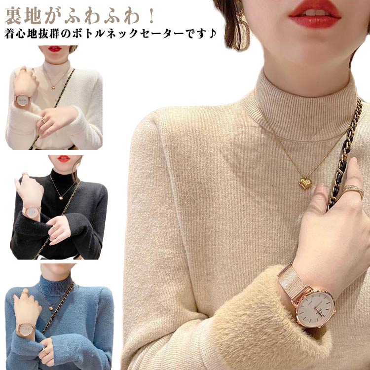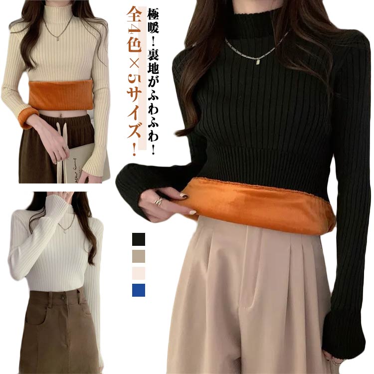 裏起毛 ニット セーター レディース 秋冬 ハイネック 裏ボア ニットセーター プルオーバー 無地 インナー カットソー
