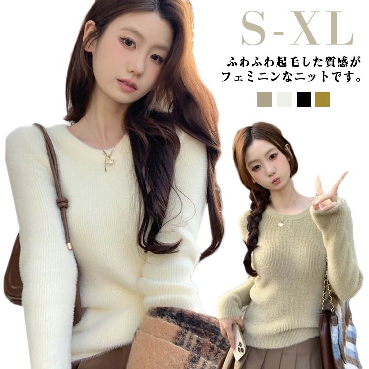 ニットセーター セーター レディース シャギーニット モヘア ニット 長袖 セーター 長袖セーター プルオーバー ニットソー 秋 冬 ショート 秋冬