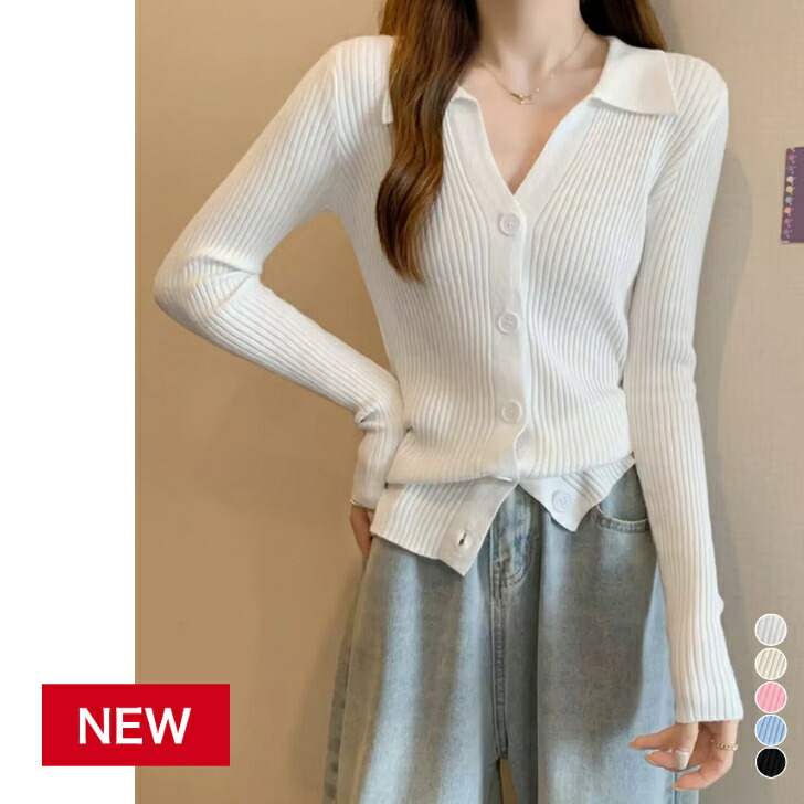 レディース カジュアル ニットウェア 襟付き ニットカーディガン 前開き 着回し おしゃれ 普段着ニットセーター