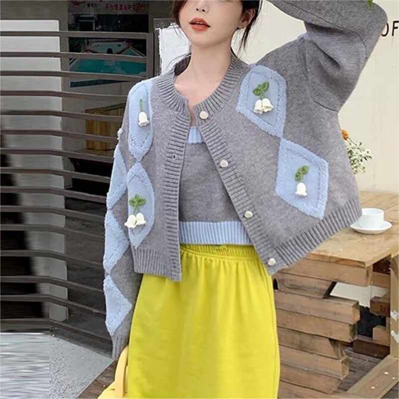 ニットセーター 春 秋 冬 レディース きれいめ 長袖 ニットソー 大人 カジュアル おしゃれ セーター 花 フラワー ニットリブニットトップス ボタン 着やせ 可愛い 暖かい 大きいサイズ オーバー