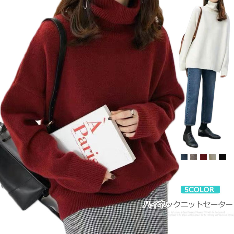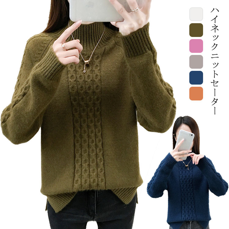 ニットセーター レディース トップス 長袖 ハイネック タートルネック ニットトップス ゆったり オシャレ 通勤 着痩せ 秋冬