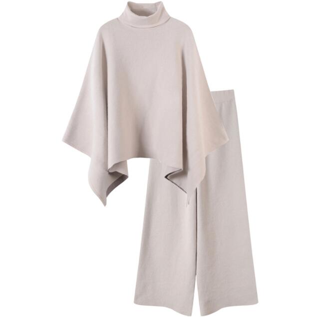 全4色 ニットセットアップニットポンチョ+ガウチョパンツレディースファッション トップス ニット セーター セーター