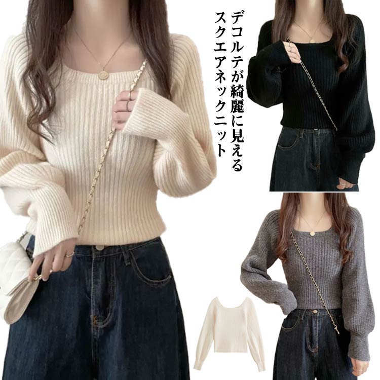 スクエアネック 無地 きれいめ 大人可愛い 着瘦せ ニットセーターレディースファッション トップス ニット セーター セーター