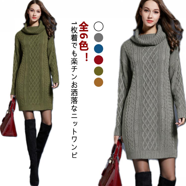 ~4 ハイネック ロングニット ニットワンピ 着瘦せ ~4レディースファッション トップス ニット セーター セーター