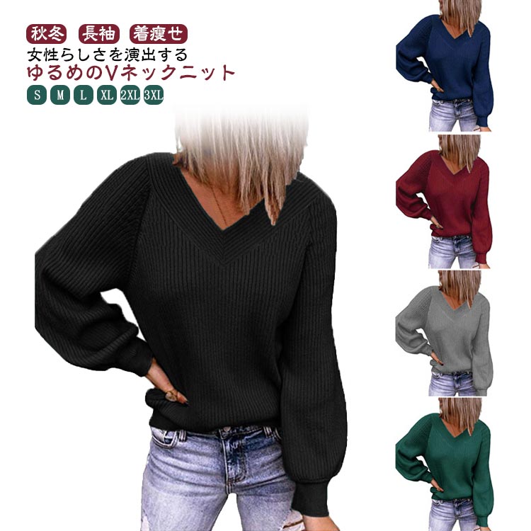 秋冬 Vネック S~3XL 秋冬 重ね着 体型カバー ニットトップスレディースファッション トップス ニット セーター セーター