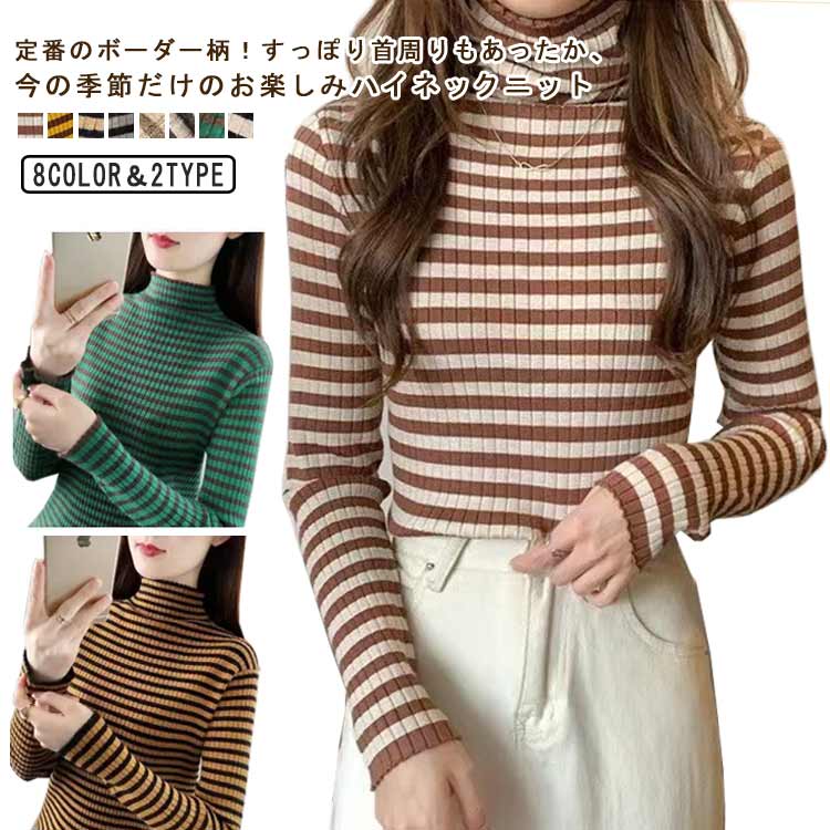 レディース ニットトップス ハイネック ニット 春秋 冬 セーター ハーフハイネック ニットプルオーバー ボーダー柄 伸縮性 インナー 冬物 長袖 タイト 冬服 春秋 大きいサイズ 着瘦せ フェミニン