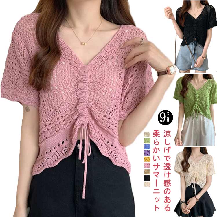 S~3XL 透かし編み 重ね着 ショート丈 透かし編み サマーニットレディースファッション トップス ニット セーター セーター