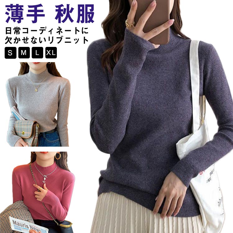 ハイネック S M L ニットトップス S M L 細見え 高級感 透け感レディースファッション トップス ニット セーター セーター