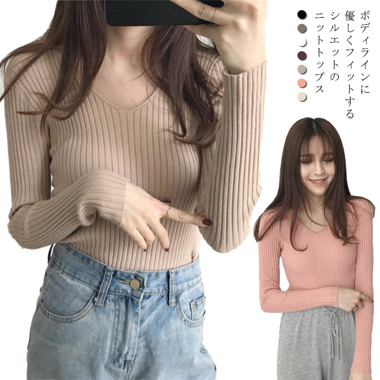 セーター ニット レディース リブ ニット トップス Vネックレディースファッション トップス ニット セーター セーター
