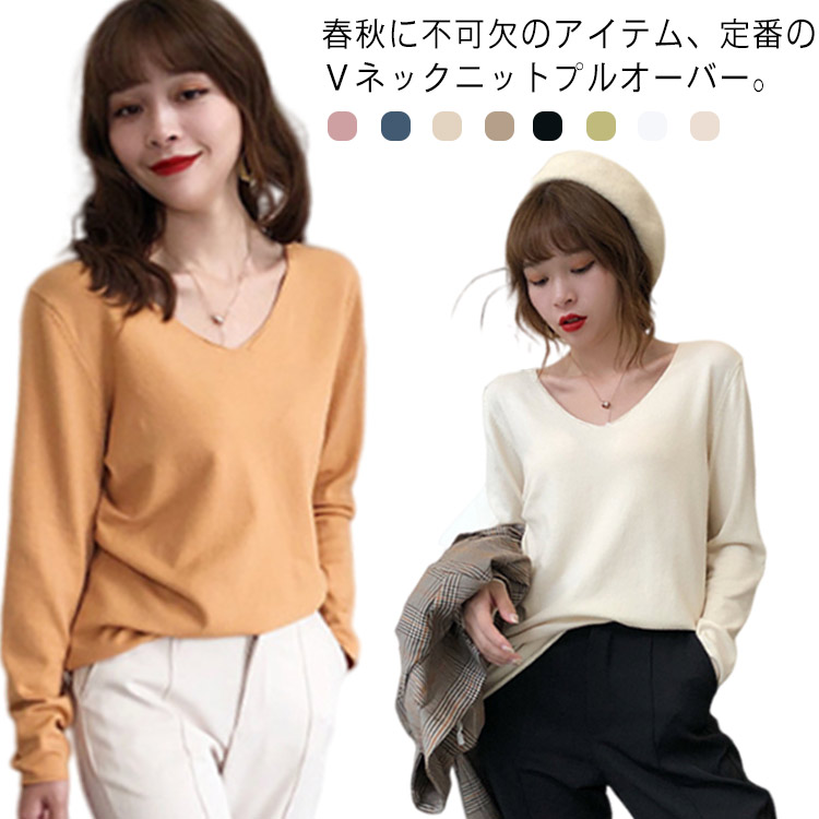 ニットプルオーバー スッキリvネックライン ゆるふわ洗えるニット おしゃれ カジュアル セクシーレディースファッション トップス ニット セーター セーター
