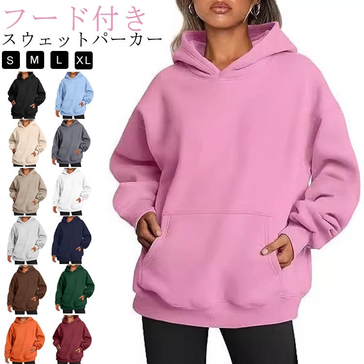 パーカー レディース トップス トレーナー スウェット スエット プルオーバー 薄手 ゆったり感 無地 シンプル 小顔 大きいサイズ 秋 冬 体型カバー