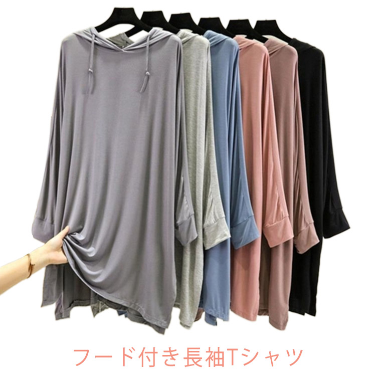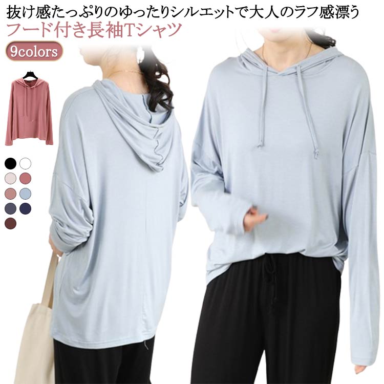 フード付きtシャツ 長袖 フード付き tシャツ 長袖 プルオーバー パーカー シャツ 春 夏 秋 カットソー レディース プルパーカー スウェット