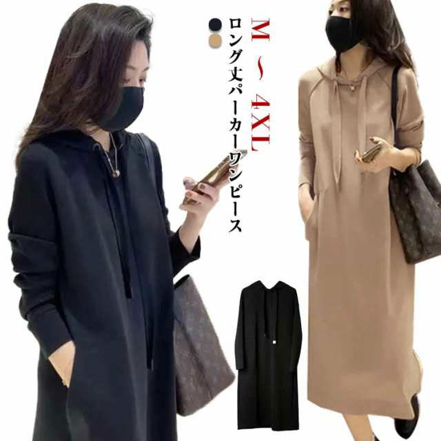 パーカーワンピース 春秋 レディース パーカー ワンピースワンピース 大きサイズ マキシ丈 ロングワンピース ロング丈 秋冬 フード付き 長袖 体型カバー カジュアル ゆったり
