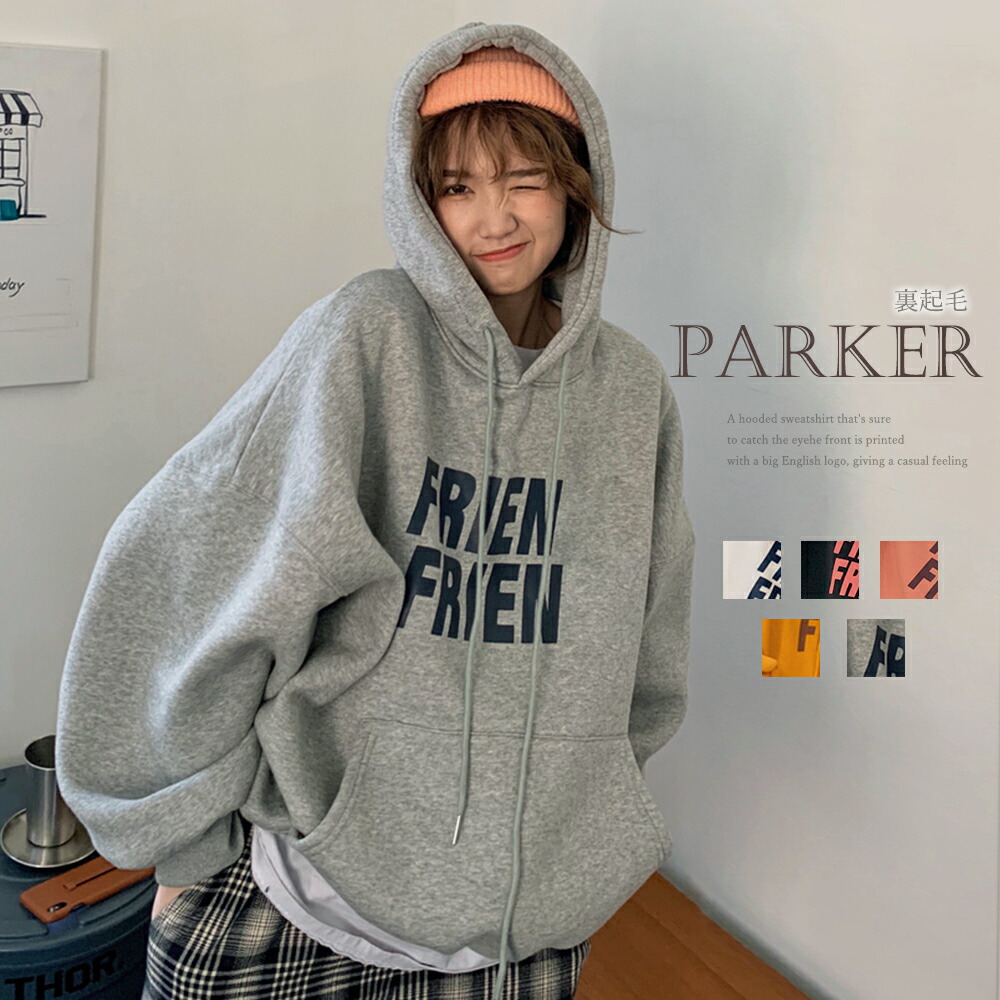 スウェットトレーナー フード付き 長袖 プルオーバー フロント 英字プリント 着やせ トップス 通学 韓国風 オルチャン