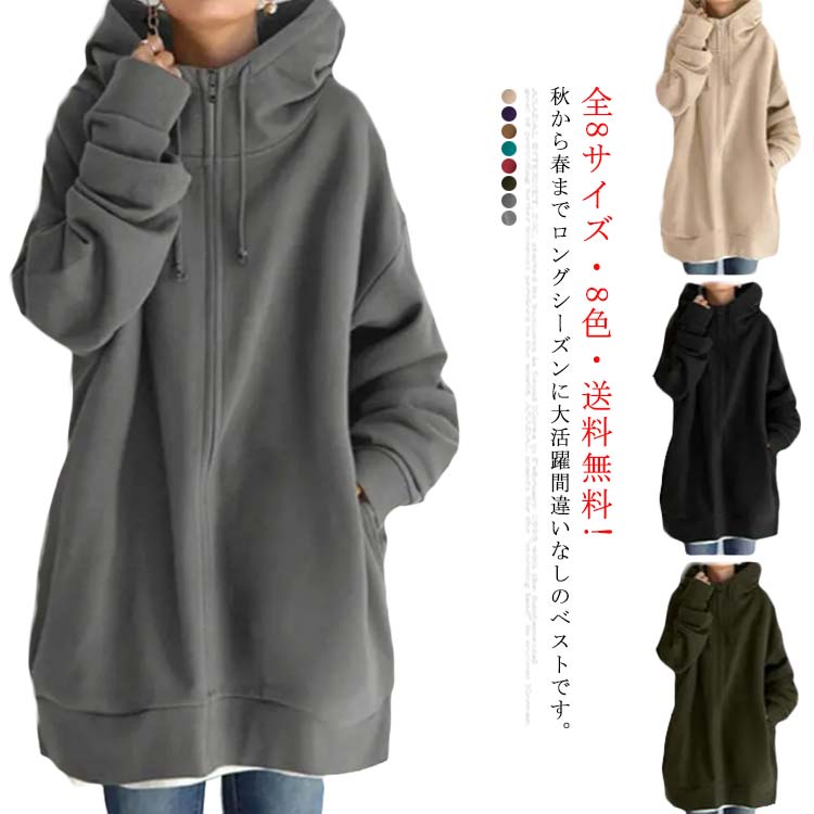パーカー レディース ライトアウター トップス フード フーディー 軽アウター 羽織り 長袖 ダブルジップ 大きいサイズ ゆったり 秋 冬 パーカー