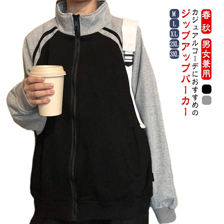 ペアルック M~3XL 男女兼用 ジップパーカー 体型カバー M~3XLレディースファッション トップス パーカー