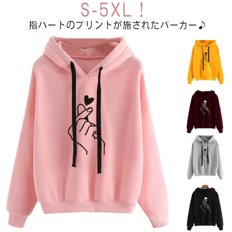 学生 レッド おしゃれ レディース フード 秋 長袖 ピンク 指ハート 大きいサイズ 黒 グレー 春 デート 通学 パーカー お出かけ 女子会 休日 10代 20代 30代 イエロー
