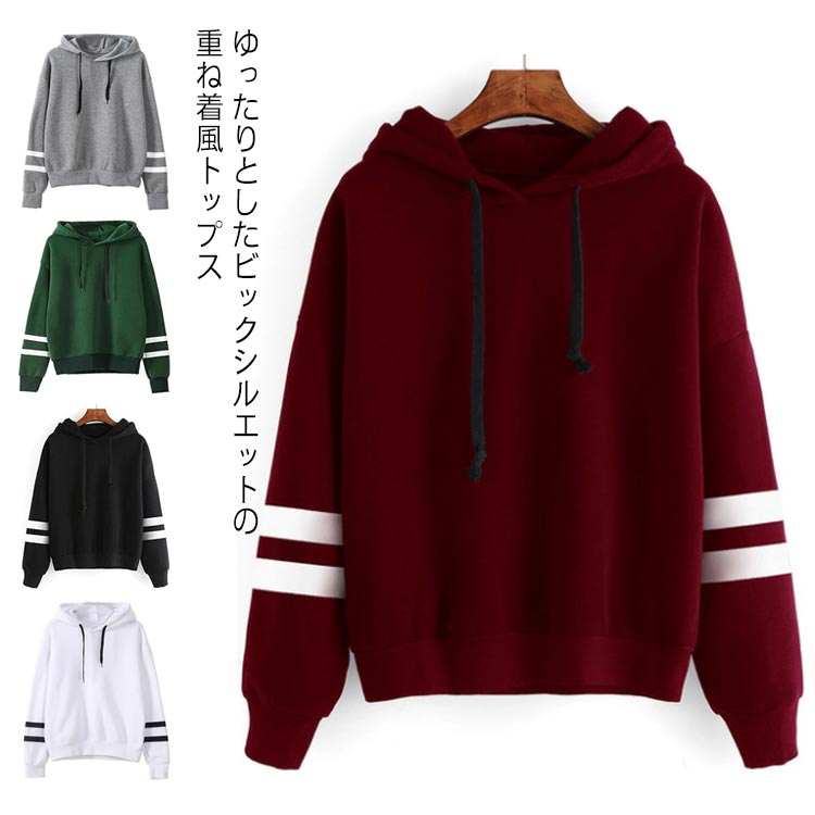 パーカー レディース 長袖 プルパーカー カットソー チュニック 重ね着風レディースファッション トップス パーカー