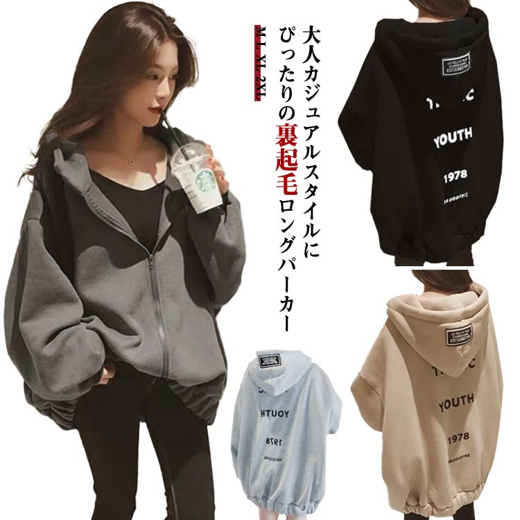 冬 秋冬 ビッグパーカー 長袖 冬 パーカー 大きめ オーバーサイズ ギフト ジップパーカー カジュアル 韓国風 裏起毛 ビッグシルエット レディース フード付き 大きいサイズ ゆったり 体型カバー