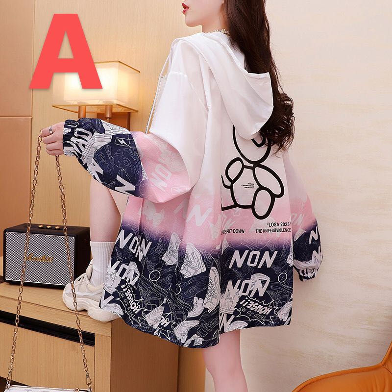 レディース アウター 日焼け止め 春夏 ゆったり 長袖 フード付き 可愛い 大きいサイズ LCDA189