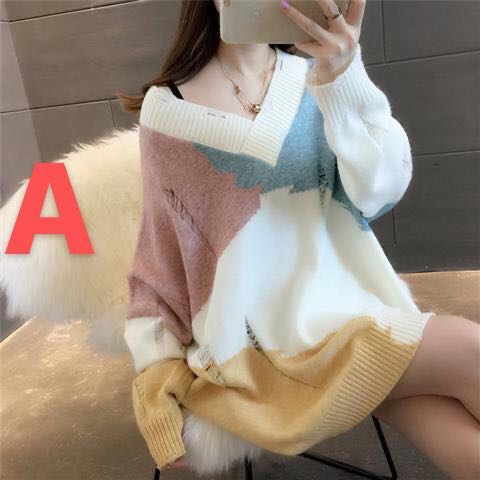 ニット セーター ダメージニット vネックニット ニットチュニック レディースニット チュニック ゆるニット 秋 冬 レディース ゆったり 体型カバー ダメージ トップス ビッグシルエット ビックシル