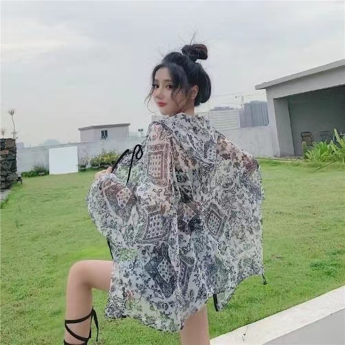 パーカー レディース カット パーカー ロング 総柄 トップス 夏 羽織レディースファッション トップス パーカー