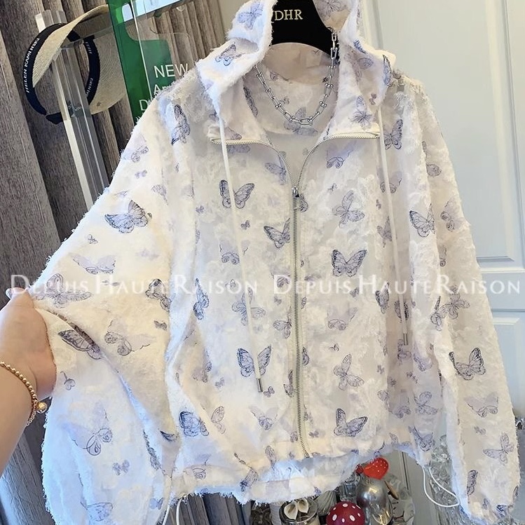 UVパーカー レディース UVカット パーカー 蝶柄 トップス 夏 UV 羽織 パーカーレディースファッション トップス パーカー