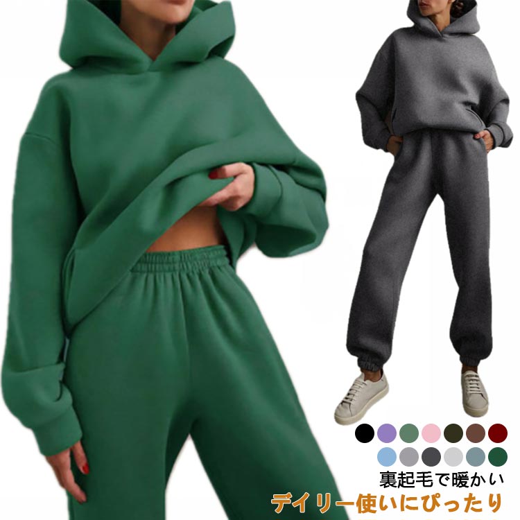 暖かい裏起毛 トレーニングウェア スウェットセット 部屋着 ルームウェア 女性 秋 リラックスウェア
