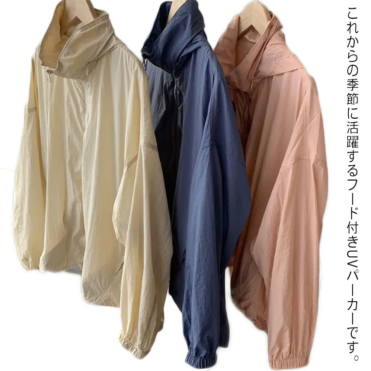 UVパーカー 紫外線対策 レディース M-2XL 羽織り パーカー トップス 通気 長袖 ジップアップ シンプル 薄手 軽量 ゆったり 通気 日除け 春夏 無地 おしゃれ フード付き ジャケット 大き