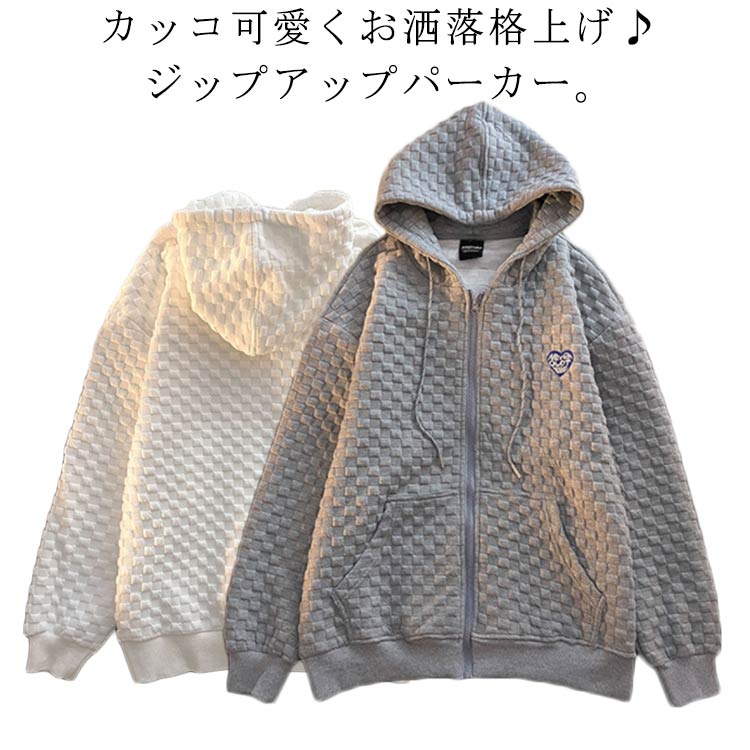 パーカー 長袖 フード付きパーカー 着痩せ レディース ワッフル素材 フロントジップ 秋 ゆったり 春 オーバーサイズ ビッグシルエット 体型カバー トップス ジップアップパーカー アウター 羽織り