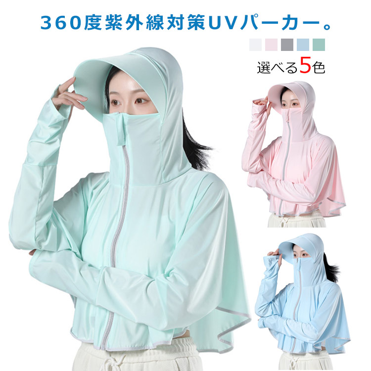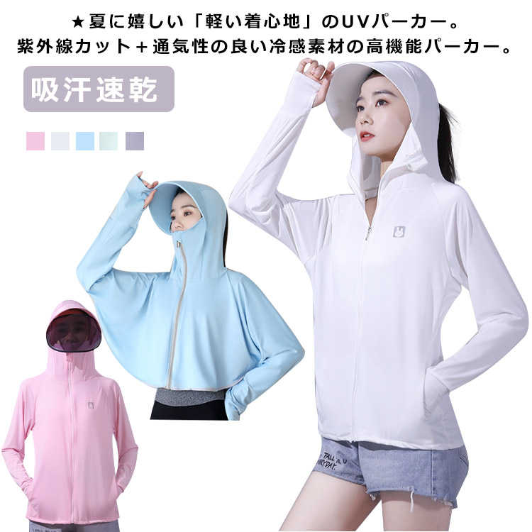 日焼け防止 薄手パーカー UVカット 指穴 冷感素材 フード付き uv ひんやり 日焼け防止 パーカー スポーツ キャンプ フェイスカバー