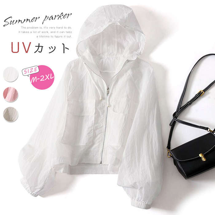 これからの季節に 着回し シアーブルゾン UV Cut Parker ピンク グレー ホワイト 白 大きいサイズ 春夏 接触冷感 日焼け止め 日焼け対策 紫外線対策 冷房対策 冷房対応 速乾 ♪