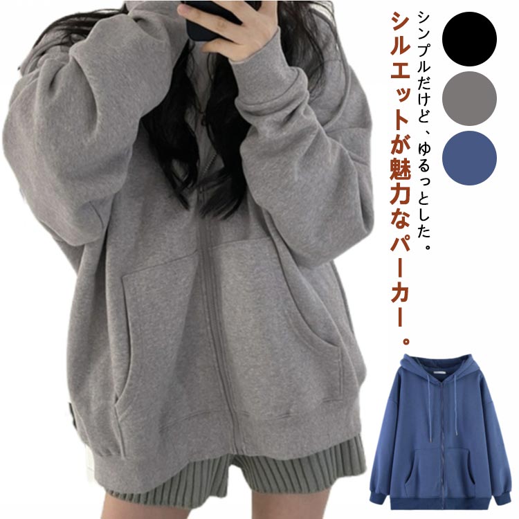 パーカー スウェット 大人 ゆったり トップス 羽織り ジップアップ 大きめ フード付き レディース 長袖 可愛い 秋 春 ロング丈 オーバーサイズ パーカー 体型カバー おしゃれ カジュアル フーデ