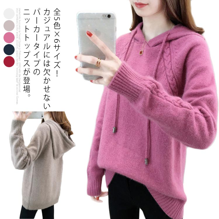 ニットパーカー フード付き ニット トップス レディース 長袖 プルオーバー 春服 春物 新作レディースファッション トップス ニット セーター ニットパーカー