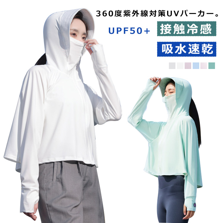 uvカット UV パーカー uv 指穴 UPF50+ ひんやり ジップアップ 接触冷感レディースファッション トップス パーカー