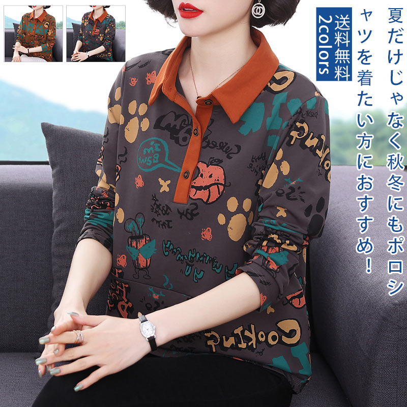 ポロシャツ レディース シャツ 七分袖 襟付き 体型カバー プリント 切り替え 大人 ボタン付き シンプル 涼しい スポーツ 柔らかい トップス カジュアル エレガント オシャレ