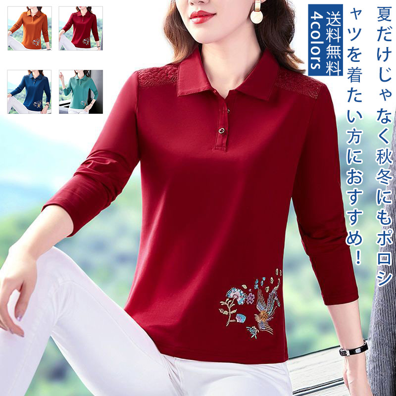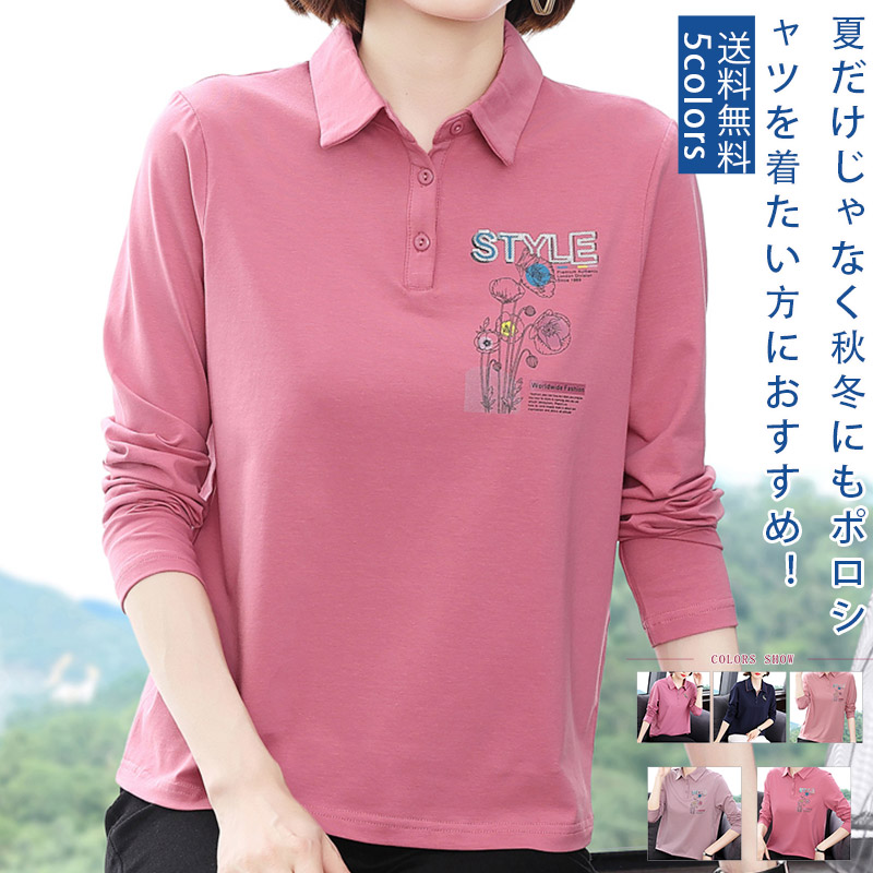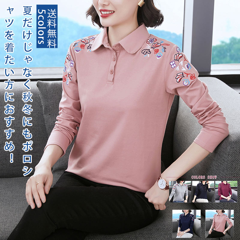 ポロシャツ レディース シャツ 七分袖 刺繍 襟付き 花柄 体型カバー ボタン付き シンプル 涼しい スポーツ 柔らかい トップス カジュアル エレガント オシャレ