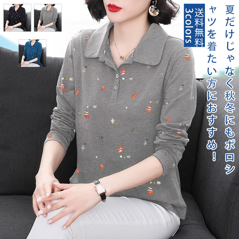ポロシャツ レディース Tシャツ シンプル 涼しい スポーツ 花柄 体型カバー ボタン付き 七分袖 刺繍 襟付き 柔らかい トップス カジュアル かわいい オシャレ