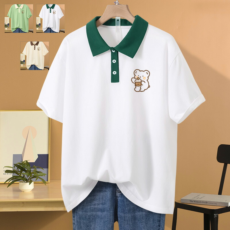ポロシャツ 半袖 レディース トップス tシャツ スポーツウェア 可愛い シンプル おしゃれ ロゴ クマプリント 半袖シャツ プレゼント
