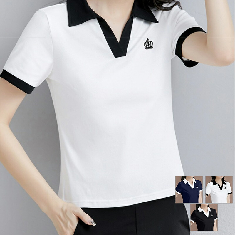 ポロシャツ 半袖 レディース トップス tシャツ スポーツウェア 王冠柄 可愛い シンプル おしゃれ 半袖シャツ 夏シャツ かわいい 2023 母の日 プレゼント