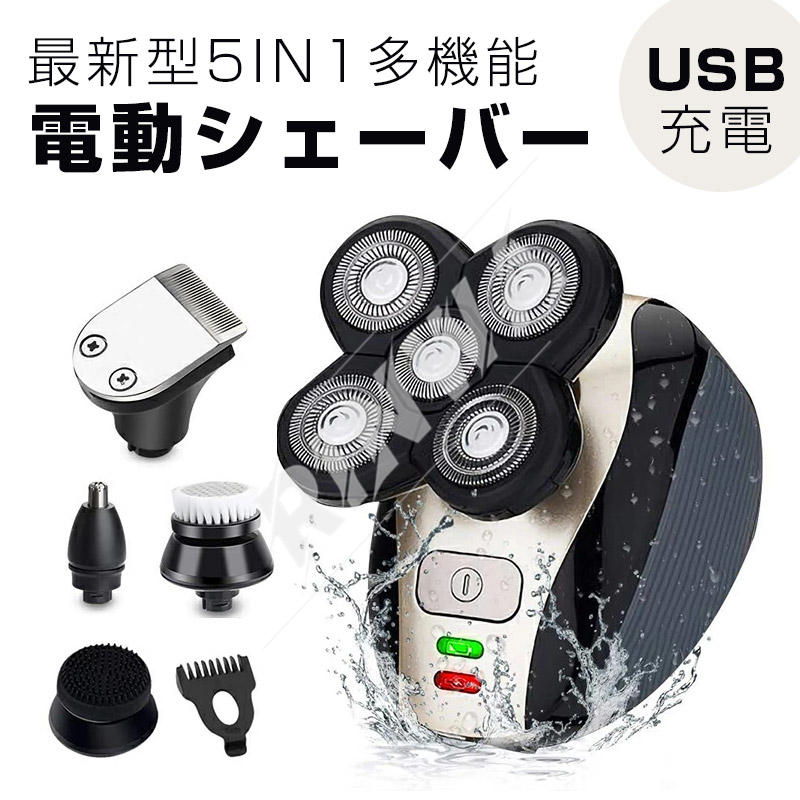 メンズ 電動シェーバー 5枚刃 髭剃り バリカン 鼻毛カッター 洗顔ブラシ5つの役割を一体化の充電式多機能シェイバー