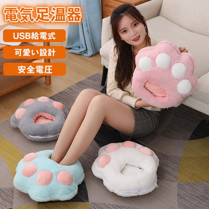 可愛い猫肉球外観のフットウォーマー 冬 もこもこ 足元あった 柔らかい 給電家電 季節 空調家電 足温器 フットヒーター