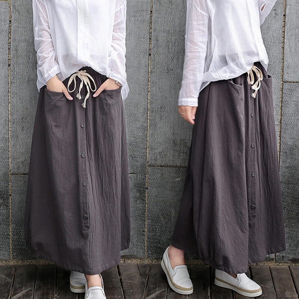 スカート リネン レディース Aラインスカート 綿麻 フレアスカート ロングスカート 綿麻スカート マキシ丈 レトロ 純色 ウエストゴム ポケット付き シンプル ゆったり 体型カバー 文芸風 森ガール