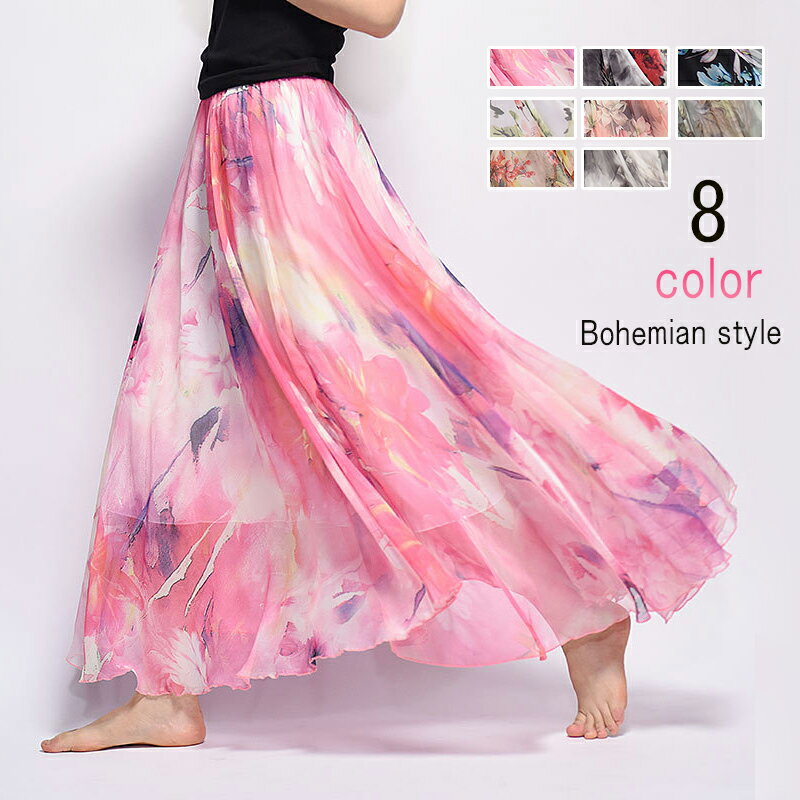 花柄 ロングスカート レディース シフォン ふんわり レデイース マキシスカート 90レディースファッション ボトムス スカート