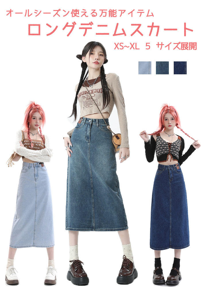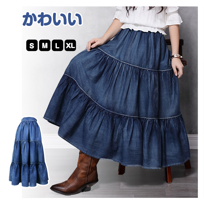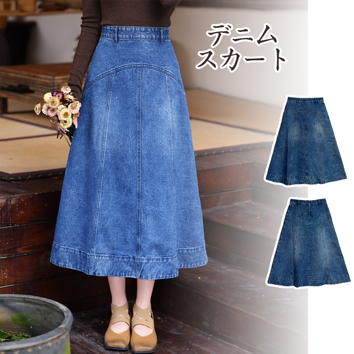 デニムスカート 春服 レディース デニムコーデ 韓国風 ロングスカート デニム フレアスカート デニム マキシ丈