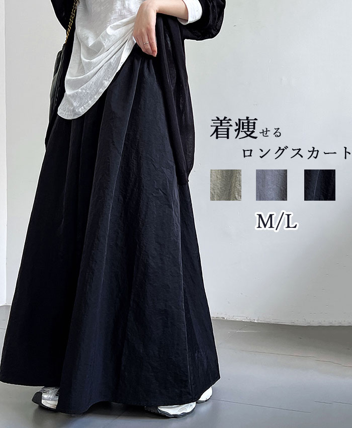 スカート 春秋 レディース フレアスカート ロングスカート ハイウエスト Aライン ウエストゴム ミモレ丈 ボトムス ボリューム