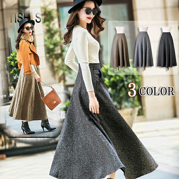 秋冬新作レディーススカート ロングスカート フレアスカート ラインスカート3colorレディースファッション ボトムス スカート