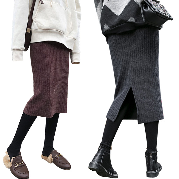 女らしいシルエットをスッキリ見えるニットロングタイトスカート レディースファッション ボトムス スカート