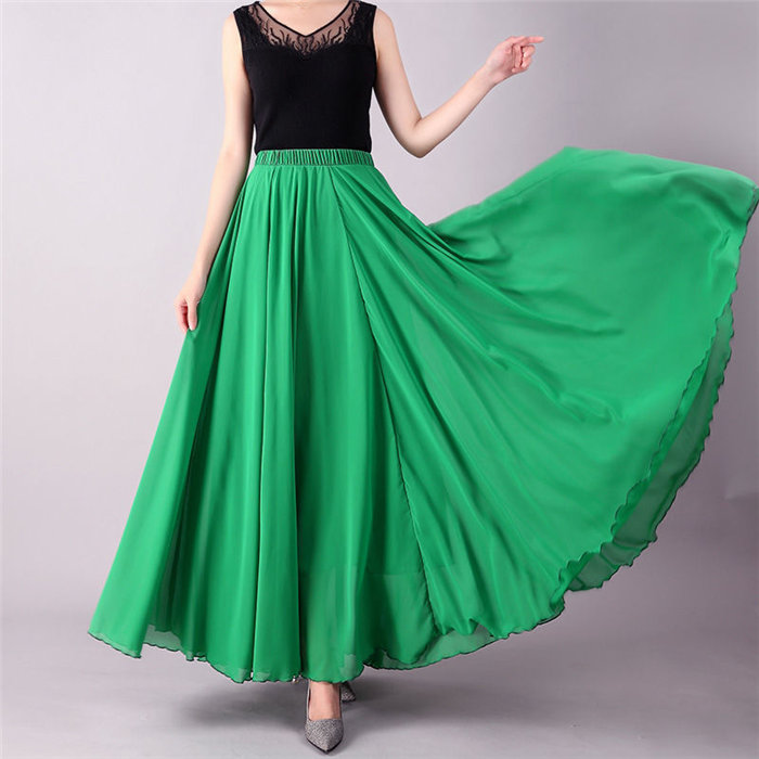 85 90 95CM丈 ロングスカート ロング丈 レディーススカート着痩せ感UPウエストゴムボヘミアン無地シフォンダンスステージダンス衣装合唱団社交ダンス衣装モダンダンス衣装