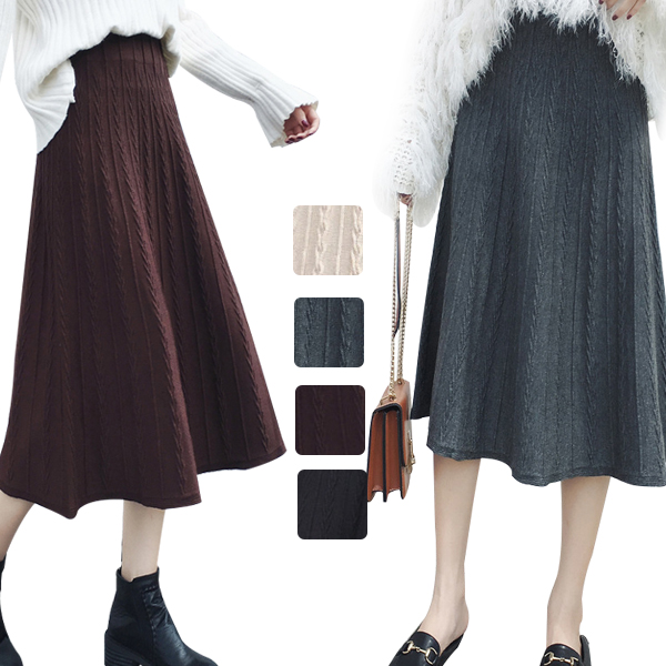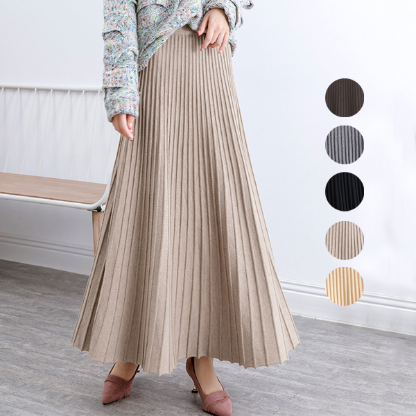ニットスカート マキン丈 レディース ロングスカート Aライン プリーツニットスカート 春 秋冬 ハイウエストスカート